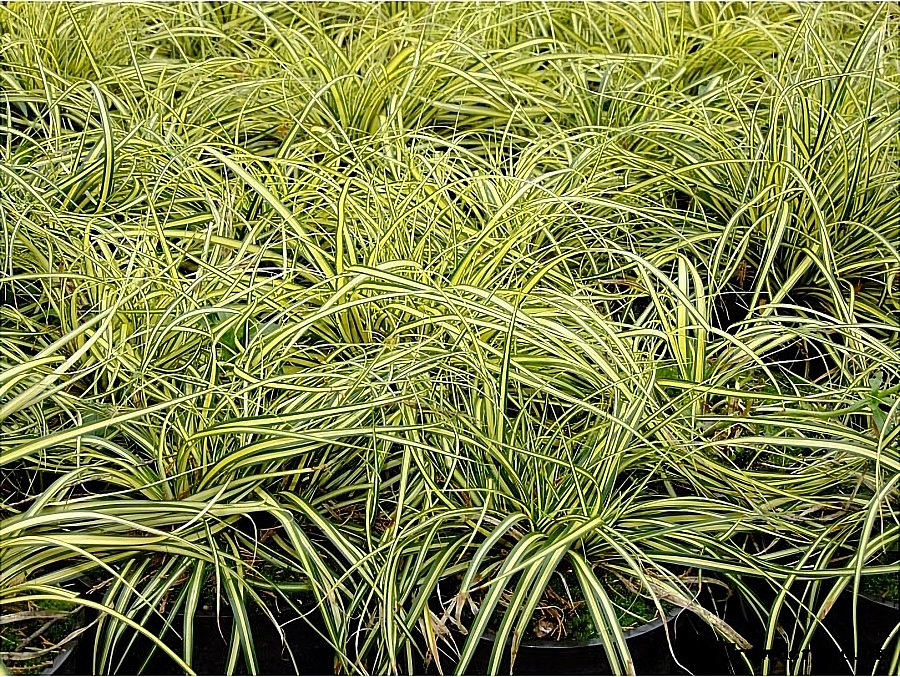Рассада Осоки охименской эверголд (Evergold) – красивый злаковый куст с дуговидно-изогнутыми листьями с кремово-белой полоской посередине. Осоку используют как почвопокровное растение, высаживают рассаду в прибрежную зону водоемов: