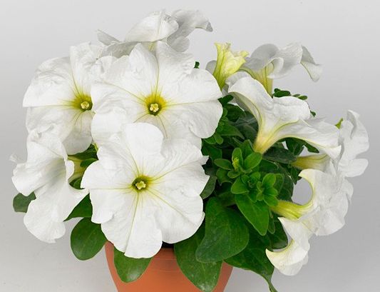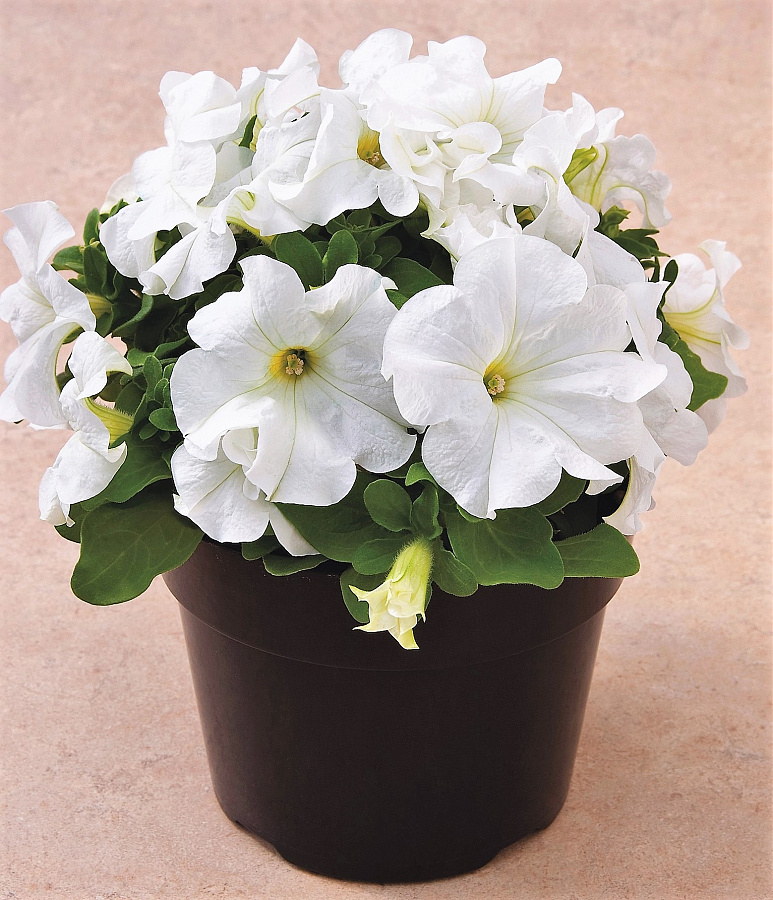 Петуния грандифлора дувет вайт - это изысканное растение с белоснежными цветками, которые напоминают пушистое облачко. Ее стебель прочный и устойчивый, достигает высоты от 15 до 25 см, что делает ее идеальным выбором для создания красивых цветочных композиций в саду или на балконе. Листья петунии грандифлора дувет вайт имеют овальную форму, создавая гармоничный контраст с нежными цветками.