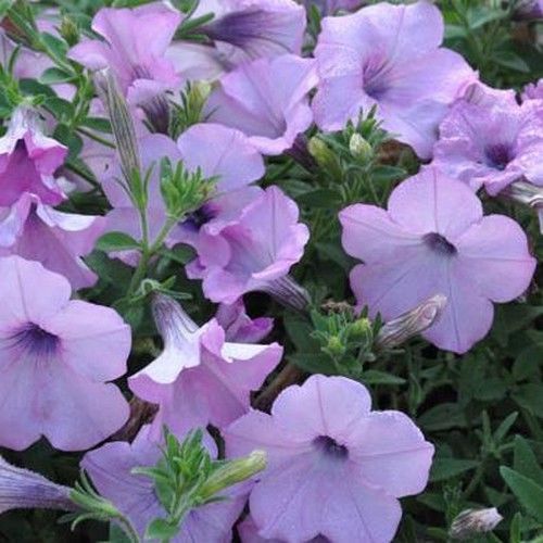 Петуния грандифлора суперкаскад лилак - это волшебное растение, которое принесет в ваш сад нежные и изысканные цветы светло-сиреневого оттенка. Ее стебли высотой до 35 см украшены крупными цветками диаметром до 13 см, создавая неповторимый вид. Листья петунии имеют ярко-зеленый цвет и элегантную форму, что делает растение еще более привлекательным.