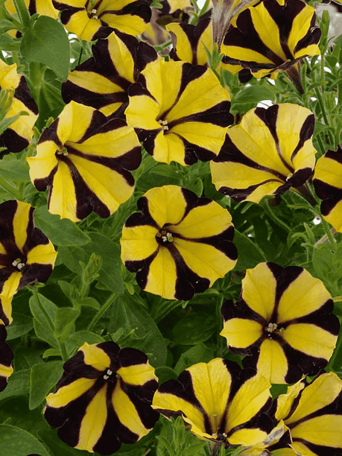 Петуния (сурфиния) go! tunia tiger stripe - это удивительное растение с желтыми цветками, которые напоминают полосатого тигра. Ее стебли достигают высоты до 20-25 см, что делает ее идеальным выбором для групповых и одиночных посадок в саду. Листья петунии имеют интересную форму и яркую окраску, что придает вашему саду особый шарм.