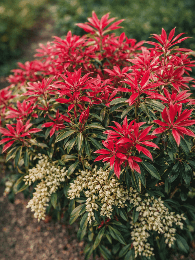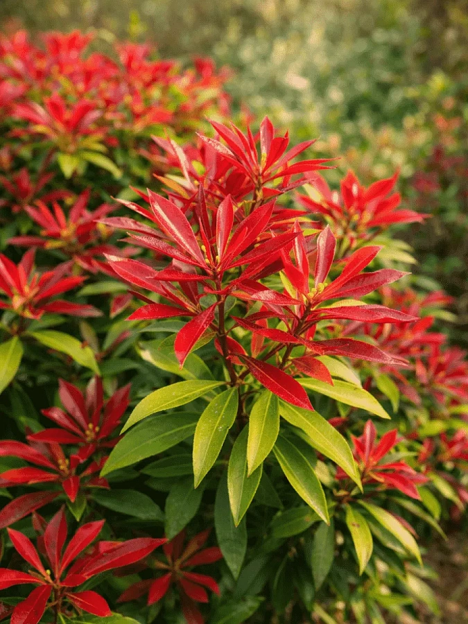 Пиерис японский forest flame - это изысканное растение с уникальным латинским названием pieris japonica, которое поразит вас своей красотой и изяществом. Этот сорт отличается густым кустарником с прекрасными ярко-красными листьями, которые создают неповторимый контраст с зелеными частями растения. Пиерис forest flame идеально подходит для групповых и одиночных посадок, придавая вашему саду или огороду особый шарм и элегантность.