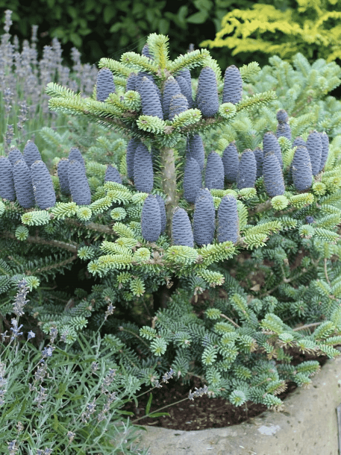 Саженцы пихты корейской Блу Эмпера (Blue Emperor) вырастут в облачка серебристо-зеленого оттенка с мягкой хвоей. Форма кроны округлая, но неравномерная. В молодом возрасте имеет форму подушки, затем вытягивается в конус. Побеги разрастаются в стороны и направлены слегка вверх. Хвоя короткая, сизо-зеленая или голубая, с белыми полосками. Крупномер дорастает до 2,5м. Плодоносит пихта корейская Блу Эмпера сиреневыми шишками, направленными вверх.
