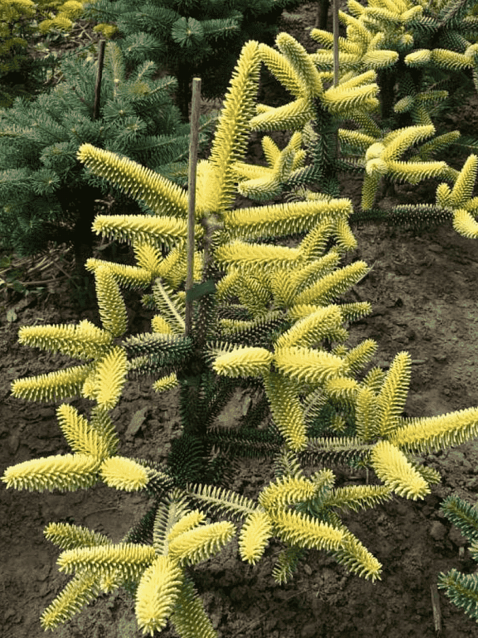 Пихта испанская aurea - это великолепное дерево с золотистыми иглами, которое станет настоящим украшением вашего сада. Ее ствол прямой и красивый, а размеры растения позволяют использовать его как в групповых, так и в одиночных посадках. Листья пихты aurea имеют форму игл и создают неповторимый визуальный эффект.