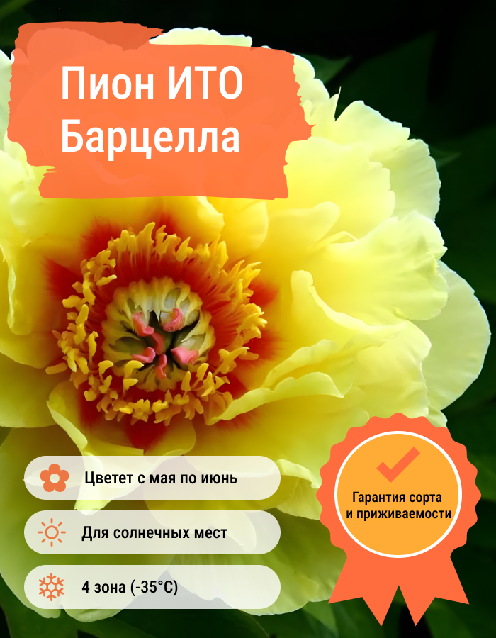 Рассада пиона ИТО Бартзелла (Bartzella) не потребует особых хлопот и вырастет в достойные украшения сада с воздушными лимонными цветами. Лепестки эффектно переливаются оттенками от темно-желтого в центре к молочно-лимонному по краям. Эффектные цветы выгодно оттеняет темно-зеленая листва. Прочные стебли хорошо держат пышные соцветия. Сорт способен образовывать семена. Нижняя древовидная часть побегов хорошо переносит зиму. Особенности пиона Бартзелла: