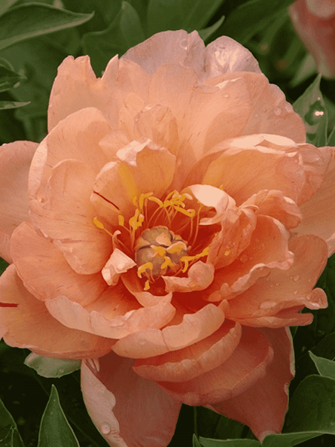 Пион ито сингинг ин зе рейн - это великолепное растение с уникальным характером. Его стебель прочный и изящный, достигает высоты до 70 см, а цветки размером до 20 см поражают своей красотой. Окраска цветков хамелеоновая, меняется от нежно-розовой до ярко-красной, создавая неповторимый вид. Листья пиона ито сингинг ин зе рейн зеленые, что придает растению особый шарм.