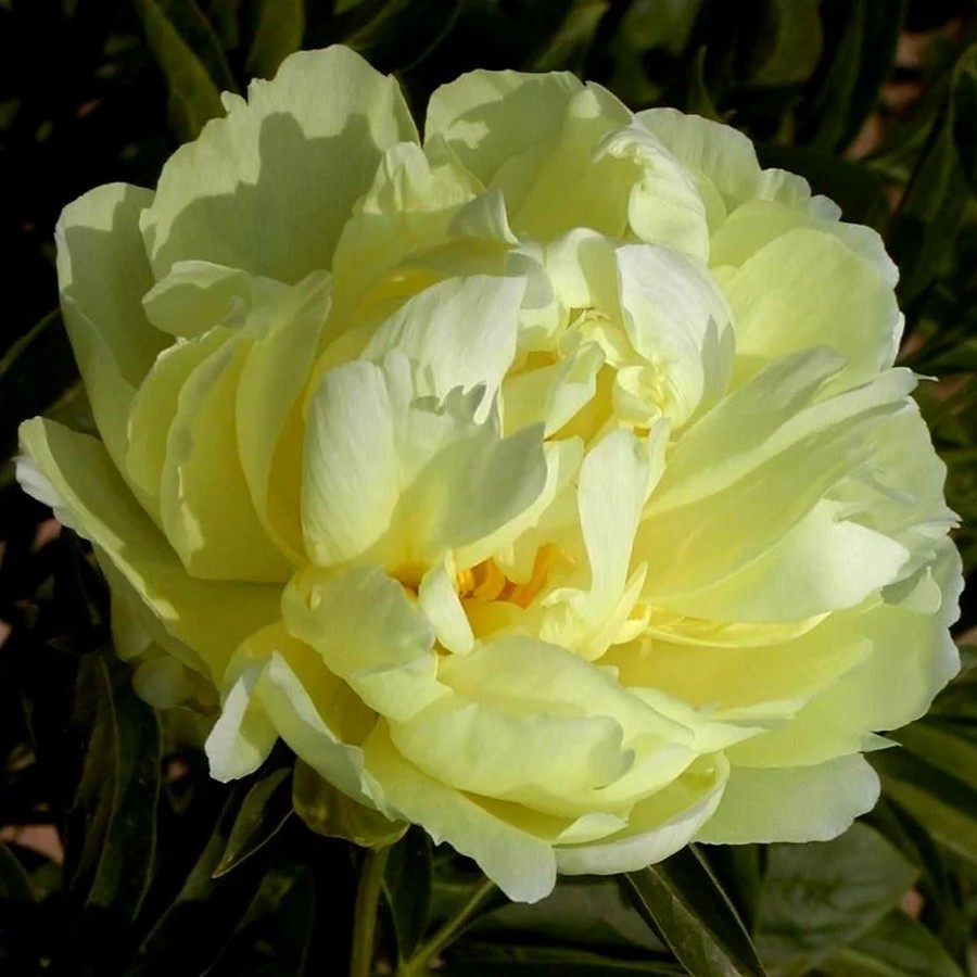 Рассада пиона молочноцветкового Голд Майн (Gold Mine): удивительное растение, у которого даже корни желтоватого оттенка, а крупные бледно-желтые цветы очень эффектны. Взрослое растение достигает 1м в высоту. Цветение обильное, начинается в конце весны или в начале лета. Цветки нежного молочно-желтого оттенка очень пышные и крупные. Долго держаться в срезке. Листья темно-зеленые, узкие. Сорт может размножаться семенами. После пересадки сортовые качества проявляются на 2-й год. Особенности пиона Голд Майн: