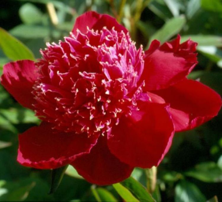 Саженцы пионов Инститьютер Дориа (Instituteur Doriat) любят хорошо освещенные места. Но может расти и в условиях частичной тени. Высота кустарника достигает 70 см. Цветок темно-бордовый, карминно-красные петалодии имеют белые кончики. В диаметре достигает до 13 – 14 см. Цветы обладают ароматом. Цветение позднее, но обильное и продолжительное. Сорт саженцев пионов Инститьютер Дориа используют для групповых и одиночных посадок, а также для срезки. Устойчивость к заболеваниям высокая. Сорт морозостойкий.