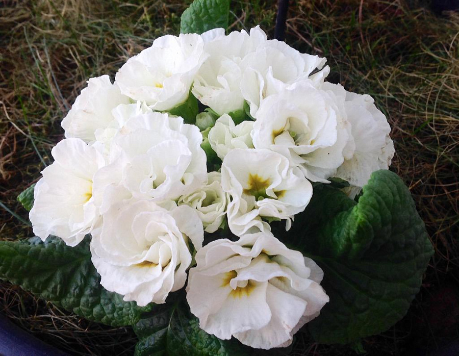 Примула махровая розелла вайт - это изысканное растение с нежными белыми цветками, которые напоминают пышные розовые облака. Ее стебель достигает высоты 12-15 см, что делает ее идеальным выбором для групповых и одиночных посадок. Листья примулы имеют форму сердца и создают уютный зеленый ковер вокруг цветков.
