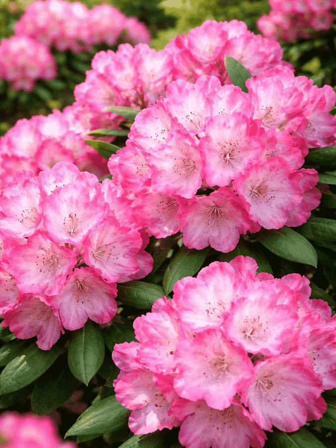 Саженцы рододендрона Фантастика (Fantastica) вырастают в эффектные кустарники, цветение которых украсит любые виды газонов и клумб. Растение имеет яркие темно – розового цвета снаружи и светлее внутри цветочки в конической формы соцветиях, которые радуют долгим пышным цветением в мае – июне. У растения кожистые вечнозеленые крупные листья. В рост саженец рододендрона Фантастика идет медленно.