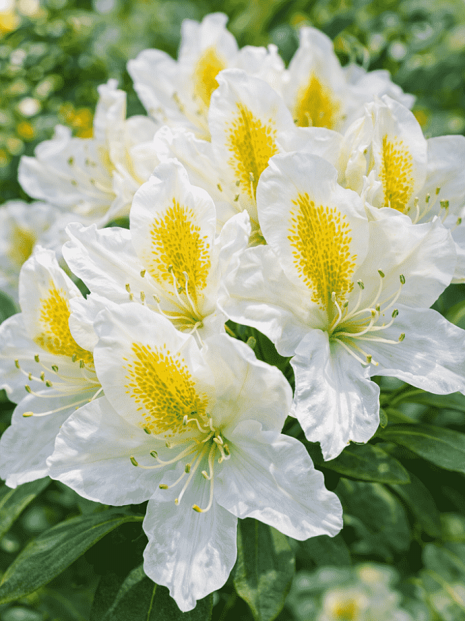 Рододендрон гибридный "Мадам Массон" - это великолепное растение с изысканными белыми цветками, которые радуют глаз своей красотой весной. Высота этого растения может достигать до 200 см, а диаметр до 300 см, что делает его идеальным для создания живых изгородей или одиночных посадок в саду. Листья рододендрона имеют темно-зеленую окраску и прекрасную форму, что придает растению особый шарм.