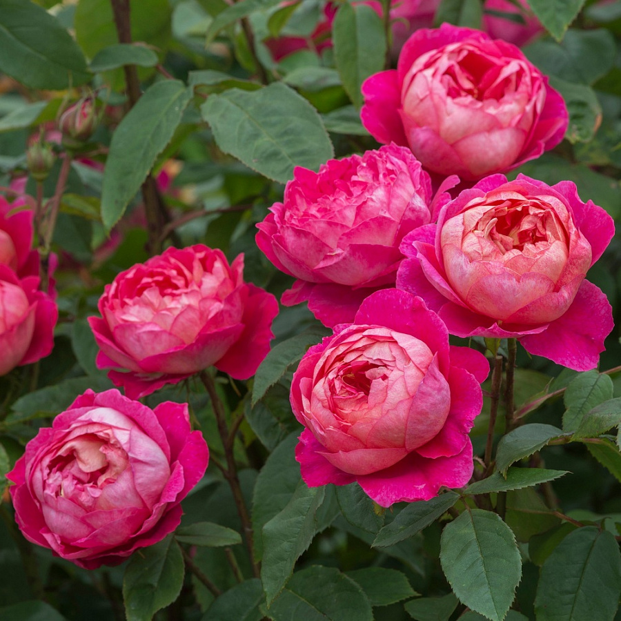 Розы сорта Benjamin Britten (Бенджамин Бриттен – кустарник необычной расцветки соцветий, они оранжево-красные. Цветы раскрываются постепенно и отлично подойдут для оттенения более нежных окрасок других сортов английских роз. Кустарник средний по высоте, мощный и раскидистый с красивой листвой. При цветении у него интенсивный запах с фруктовыми нотками. Цветы легкие и махровые красивого оттенка, но цветение не слишком обильное. Выглядит растение изысканно и интересно из-за сочетания классической формы и оригинальной окраски цветов. Эта роза поможет создать шикарные розарии, будет цвести неоднократно за сезон. В процессе роспуска лепестки немного отгибаются. Растение устойчиво к поражению болезнями.
