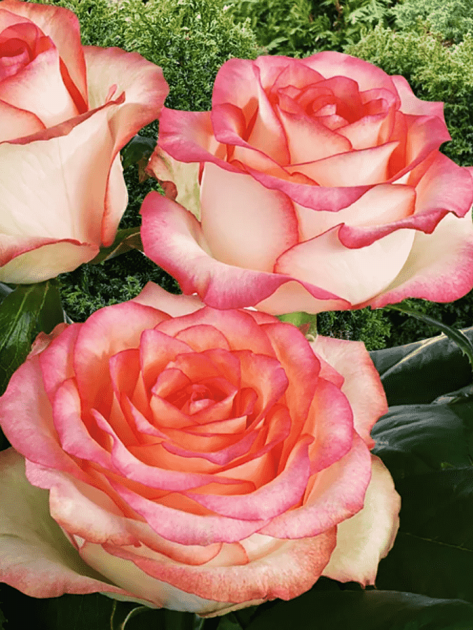 Роза чайно-гибридная Jumilia - это изысканное растение с молочно-розовыми цветками, которые плавно переходят в ягодный оттенок. Ее ствол прочный и устойчивый, достигая высоты до 80 см, а диаметр цветка может достигать 40-60 см. Листья розы Jumilia имеют элегантную форму и насыщенный зеленый цвет, что делает растение еще более привлекательным.