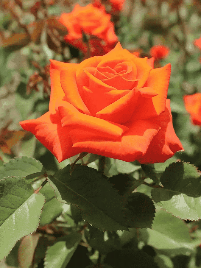 Роза сорта Monika (Моника) – яркий красивый кустарник чайно-гибридной группы. Его цветки смотрятся наиболее выигрышно, когда только начинают раскрывать бутоны. Они ярко-оранжевые с примесью алого оттенка снаружи, что контрастно смотрится на фоне внутреннего желтого цвета. НА прямостоячем побеге могут формироваться 1 или 2 цветка сразу, поэтому сорт хорошо подойдет для срезки. Листья темные, а кустарник довольно высокий. Он устойчив к болезням и в условиях теплого климата вырастает до 2 м в высоту. Бутоны этого сорта элегантные и длинные, а их насыщенный цвет долго не выгорает. Растение поможет украсить живые изгороди и бордеры на участке.