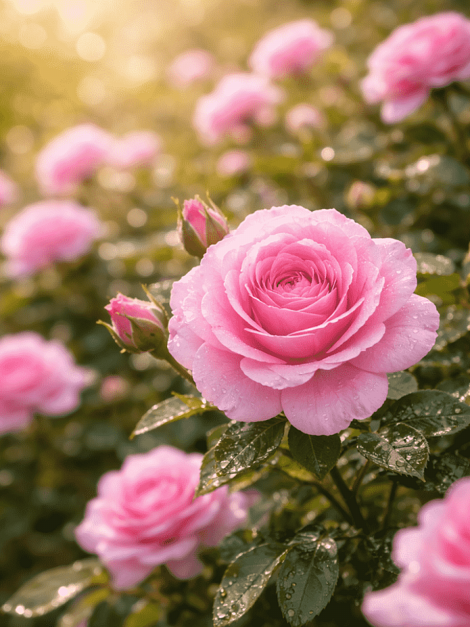 Роза флорибунда Bonica - это великолепное растение с изящными розовыми цветками, которые радуют глаз своей красотой в июне и сентябре. Это растение достигает высоты до 70-90 см и диаметра до 60-80 см, что делает его идеальным выбором для групповых или одиночных посадок в саду. Листья розы Bonica имеют ярко-зеленый цвет и создают прекрасный контраст с розовыми цветками.