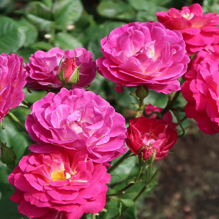 Густо-махровые цветки (40-50 лепестков), цвет - смесь оттенков розового, сильный аромат гвоздики, специй. Цветки крупные, с острым кончиком лепестков, в соцветиях. Куст вертикальный, густой, высотой 90-150 см. В полном роспуске показывает серединку со светлым глазком. Сорт среднеустойчив к болезням.