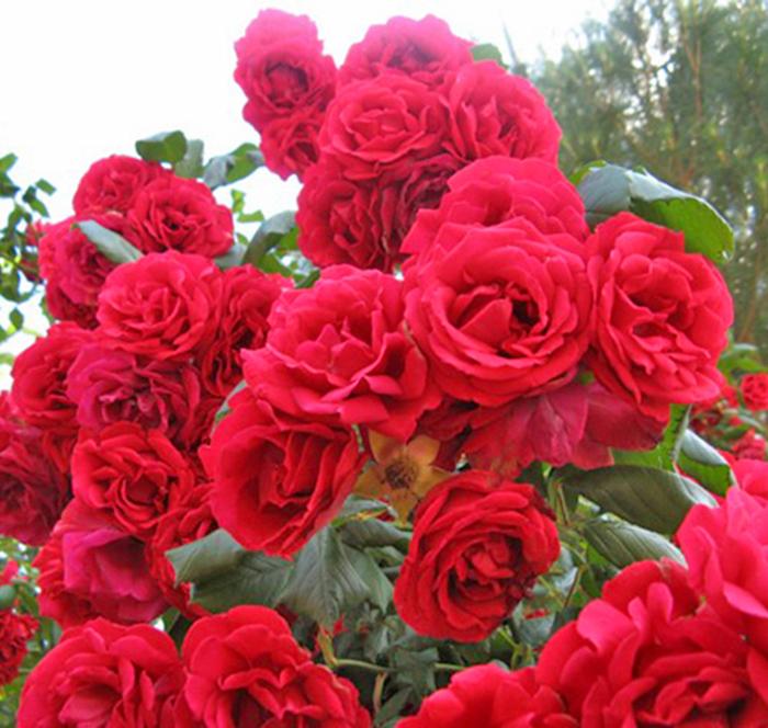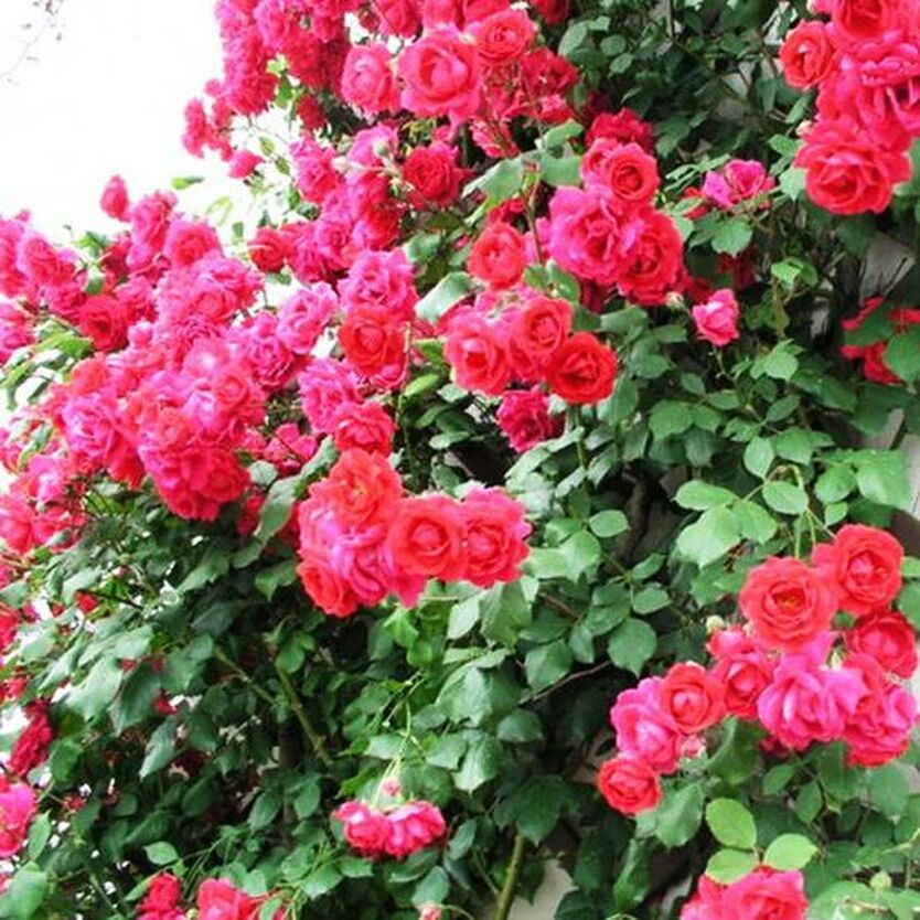 Саженцы розы плетистой Пол Скарлет Клаймбер (Paul's Scarlet Climber) впервые появились еще в 1916 г. в Великобритании и уже тогда завоевали золотую медаль Королевского общества розоводов. С тех пор ежегодное число поклонников этого сорта только растёт: он имеет классические небольшие ярко-красные цветы, хорошо разрастается, неприхотлив к почве, не болеет, морозостоек - идеальное декоративное украшение для садового участка! Крупномеры хорошо укореняются, достигая в высоту и в ширину 200 – 300 см и обильно цветут несколько раз за лето. В одной кисти бывает 2-3 цветка, а их диаметр 7 – 8 см.