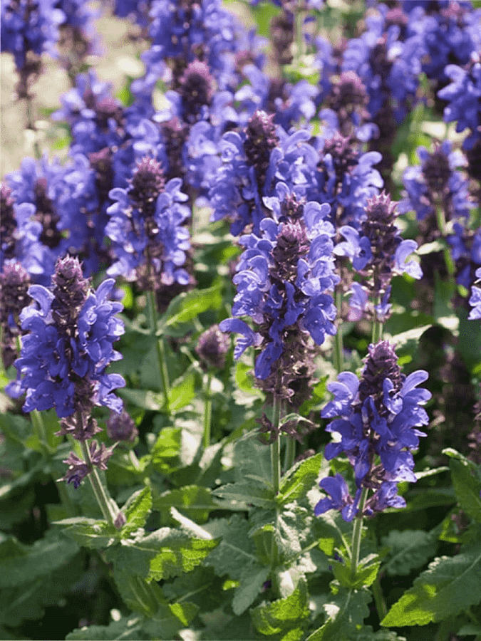 Шалфей дубравный marvel sky blue - это удивительное растение с голубыми цветками, которое поразит вас своей красотой и изящностью. Этот сорт шалфея, с латинским названием salvia nemorosa, отличается высотой до 60 см и цветением в июле и сентябре. Его стебли прочные, листья имеют интересную форму и ярко-зеленый цвет, что делает его идеальным для групповых и одиночных посадок в саду.