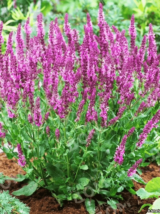 Рассада шалфея дубравного Роуз Квин (Rose Queen) прекрасно играет роль фона для любых сортов роз благодаря мелким розово-сиреневым сидячим цветам, собранным во внушительные свечи колосовидных соцветий длиной 30-40 см. Рост самого растения достигает 60 см. Прямые ветвящиеся стебли и крупные слегка опушенные листья дают рассаде прелестный сизый оттенок до и после цветения.