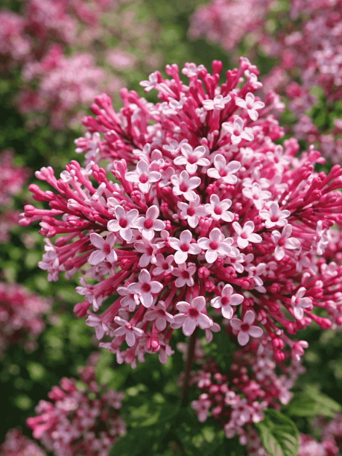 Саженцы сирени Мейера Ред Пикси (Syringa meyeri Red Pixie) популярны благодаря необычной окраске цветков и двум периодам цветения за сезон.