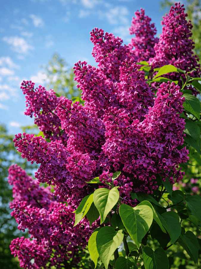 Сирень обыкновенная день победы цветет в мае, радуя глаз своими яркими цветами. Она предпочитает солнечные места и плодородные почвы. Для ухода за растением необходимо регулярное поливание и опрыскивание, особенно в жаркие дни. Также рекомендуется удобрение для обеспечения растения всеми необходимыми питательными веществами.