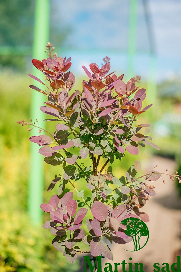 Саженцы Скумпии Фоллис Пурпуреус (Follis Purpureis, Cotinus coggygria) – листовидный среднерослый кустарник, его высота достигает 300 сантиметров. Крона раскидистая, на штамбе, округлой формы, достаточно густая, ее диаметр 250 сантиметров.