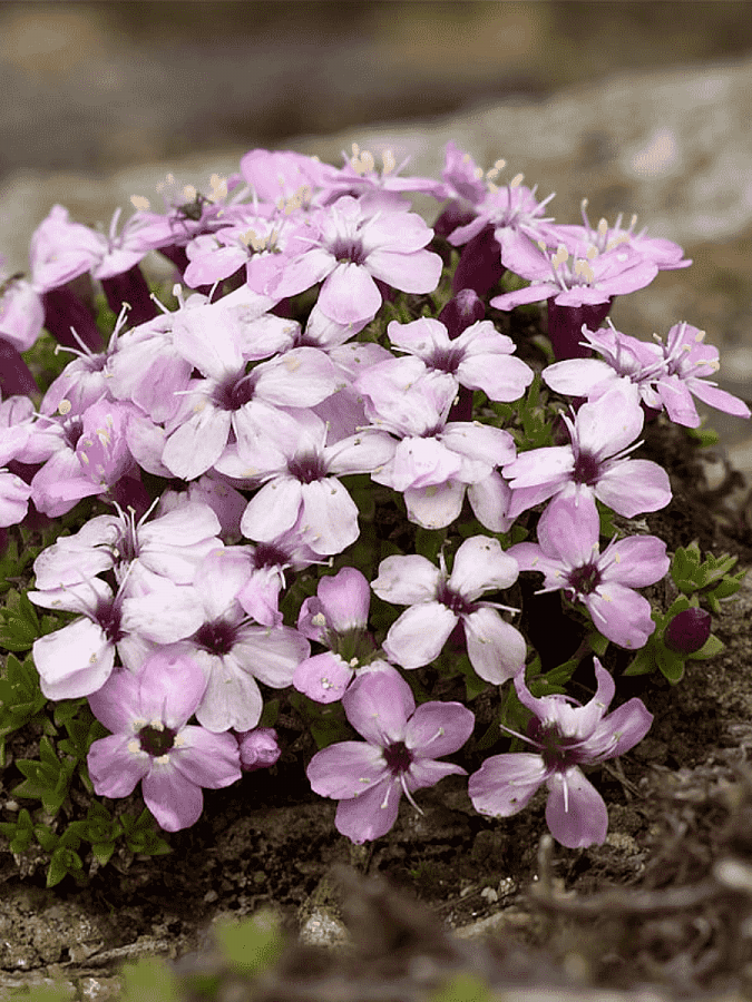 Смолёвка бесстебельная acaulis - это удивительное растение с нежными цветками, которые радуют глаз своей розовой и пурпурной окраской. Ее компактные размеры делают ее идеальным выбором для групповых и одиночных посадок в саду. Высота этого растения составляет всего 5-10 см, а диаметр доходит до 60 см, что делает его идеальным для создания красивых цветочных композиций.