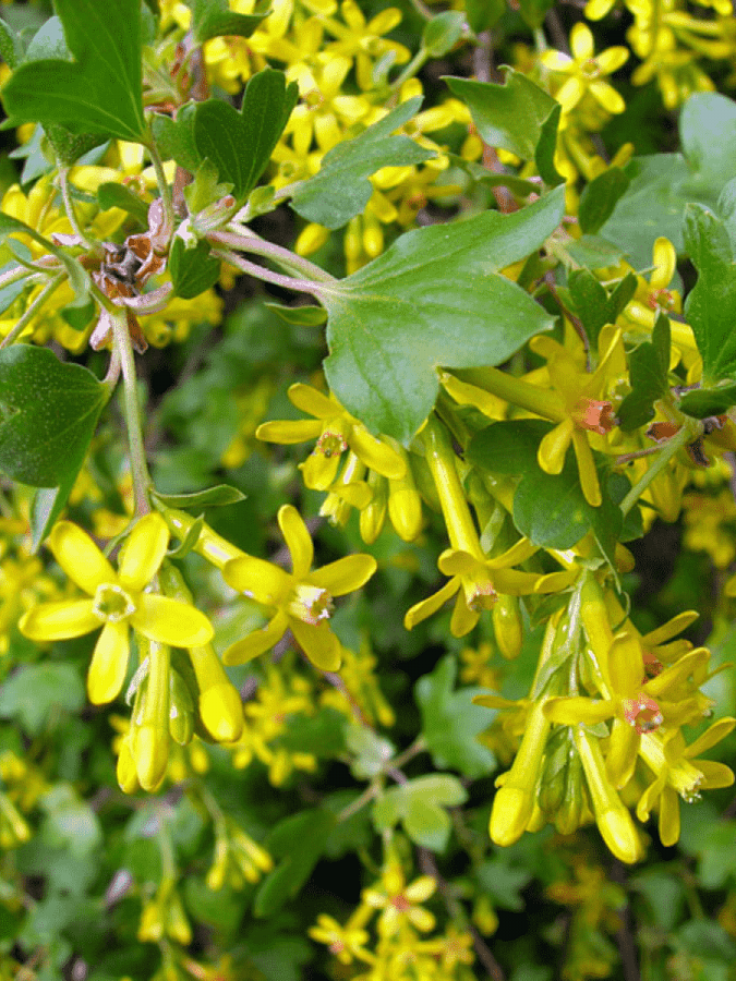 Саженцы смородины золотистой отличаются от других сортов тем, что они засухоустойчивы. Продвинутые садоводы любят формировать кроны кустарника, чтобы он лучше освещался. Период цветения крупномера смородины золотистой короткий – всего 15-20 дней. В это время растение покрывается мелкими желтыми цветочками. Потом кустарник начинает плодоносить. Урожай довольно большой. Плоды черного цвета шаровидной формы. Ухаживают за саженцами смородины золотистой просто: удобряют почву во время цветения и проводят обрезку в сентябре или в начале марта. Полив необходим только во время сильной засухи.