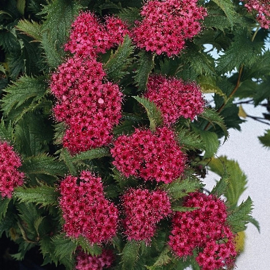 Саженцы кустарника лиственного Криспа (Crispa) отличаются от подобных растений своими оригинальными опущенными листьями темно-зеленого оттенка с неровными краями. Его часто применяют, как живую изгородь, бордюры, сажают одиночно или группами или вместе с хвойными деревьями. Криспа – это изящный кустарник небольшой высоты, достигающий 60 см в высоту и 80 см в ширину. Он имеет шаровидную густую крону с прямостоячими изогнутыми побегами. Цветы растения пышные зонтики до 6 см в диаметре, состоят из мелких цветочков нежного лилового оттенка. Листья кустарника смотрятся не менее декоративно – они резные и волнистые по краям, в молодом состоянии красноватые, а осенью приобретают алый или оранжевый оттенок.
