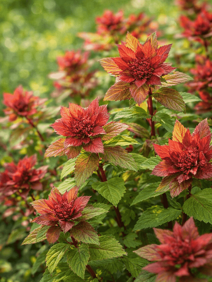 Летняя окраска листвы : яркую красновато-розовая, светло-салатовая, красная, желтая