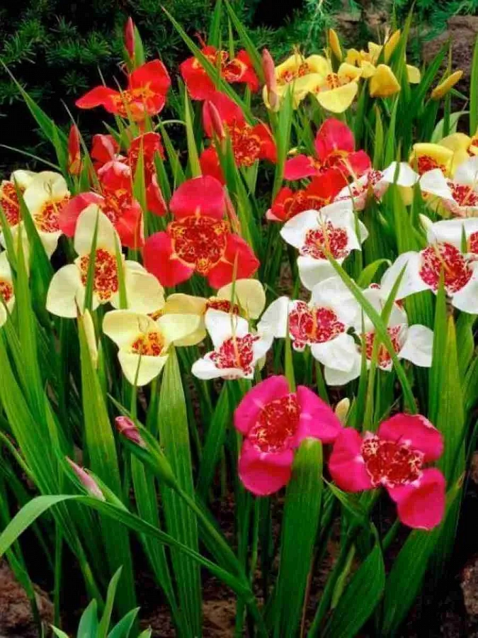 Тигридия mixed радует своим цветением в июле и сентябре, наполняя сад невероятным ароматом и яркими красками. Это растение предпочитает групповые посадки, но также может быть выращено и в одиночных посадках, создавая удивительные композиции.