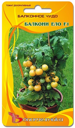 Семена томата "Балкони Ело F1" (Balkoni Elo F1) высевают в конце февраля на рассаду. Культура подходит для выращивания в цветочных горшках на подоконниках, балконах и верандах. Все кустики получаются одного размера и не превышают высоту 25 см. В период роста до цветения и в фазу активной бутонизации растение необходимо подкармливать минеральными удобрениями с микроэлементами. Плоды можно собирать с июле – августе. Помидорки круглой формы, небольшие, массой от 30 до 50 грамм. Окрашены они в желтый цвет, мякоть ароматная, сладкая на вкус. Используют для потребления в свежем виде.