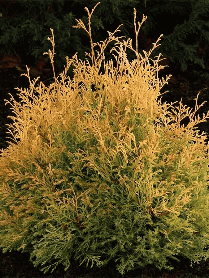 Саженцы туи Рейнголд (Reingold) дадут возможность эффектно украсить участок. Особенностью этого сорта является окрас хвои: