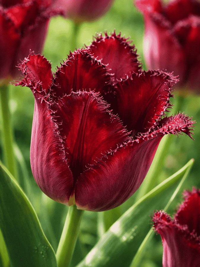 Тюльпан бахромчатый Pacific Pearl - это изысканное растение с темно-малиновыми цветками, которое поразит вас своей красотой и изяществом. Этот многолетний цветок достигает высоты до 40 см и идеально подходит для групповых и одиночных посадок. Листья тюльпана Pacific Pearl имеют травянистую форму, что придает растению особый шарм.