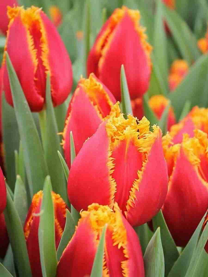 Тюльпан бахромчатый Davenport - это великолепное растение с красивыми крупными цветками, окрашенными в яркий красный цвет с ярко-желтой бахромой. Этот сорт тюльпанов отличается высокой морозостойкостью и может процветать в различных климатических условиях, включая Московскую область и большую часть России.