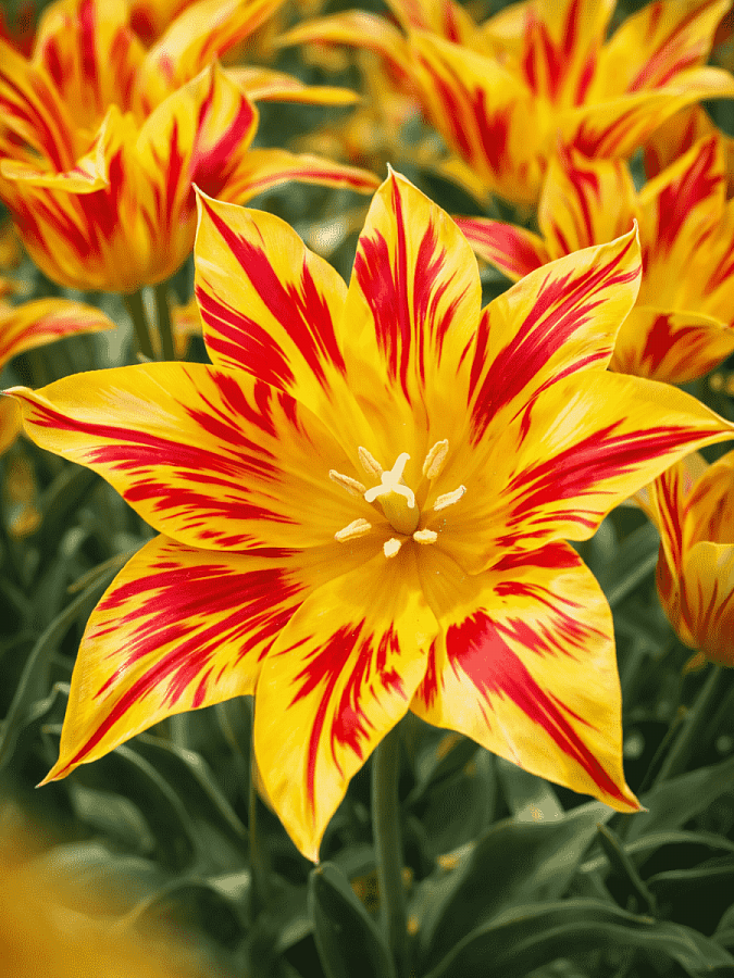 Тюльпан flaming bayside - это великолепное растение с яркими желто-красными цветками, которые привлекут внимание всех садоводов. Стебли этого тюльпана достигают высоты до 50-60 см, что делает его идеальным для групповых и одиночных посадок. Листья тюльпана flaming bayside имеют классическую форму и создают красивый контраст с яркими цветами.