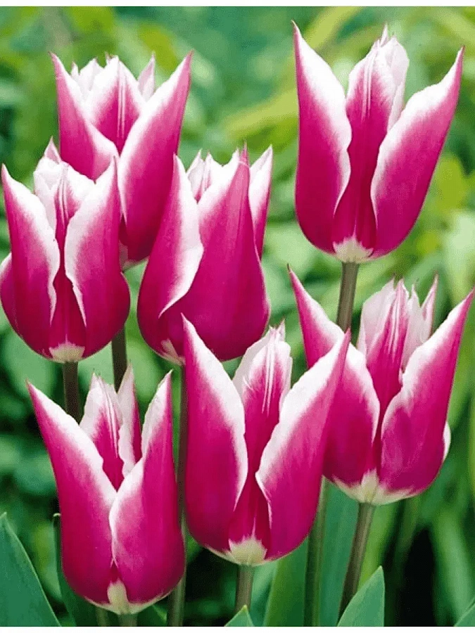 Луковицы тюльпана Клаудия (Claudia) дают заслуженно пользуются популярностью благодаря своей красоте. Этот лилиецветный тюльпан имеет удлиненный изящный бокал с острыми лепестками яркого малиново –белого цвета. Они довольно неприхотливы в уходе. Подходит почти любая почва, но лучше с хорошим дренажом.