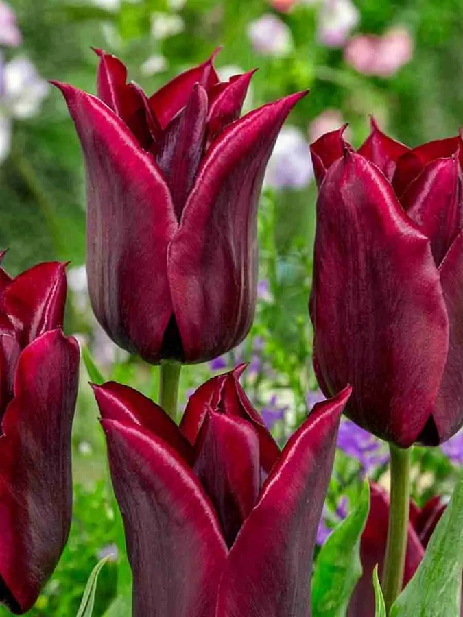 Луковицы тюльпана лилиецветного Lasting Love (Tulipa) имеет удлиненные листочки цветков, которые заострены и отогнуты наружу. Цветоносы достигают в высоту 50 см, а бокалы цветов примерно 8 см. предпочитает хорошо освещенные места, защищенные от сильных порывов ветра. Почва подбирается рыхлая, обогащенная микроэлементами. Нельзя допускать застой влаги. Ластинг Лав цветет в середине мая необычайно красивыми бутонами темно-бордового цвета. Можно использовать в качестве одиночных посадок для будущего срезания или использовать для озеленения сада или парка.