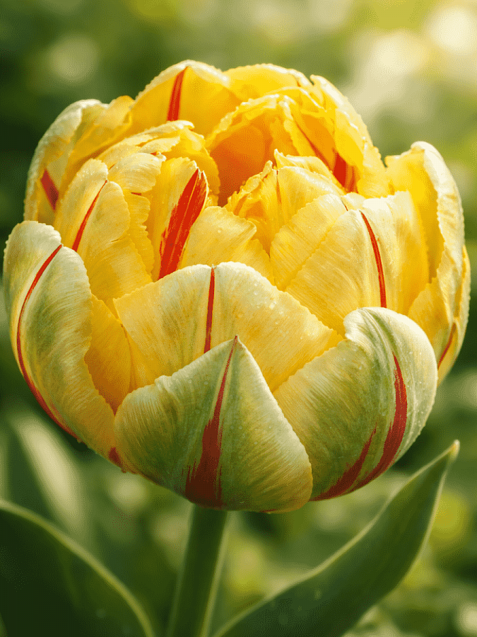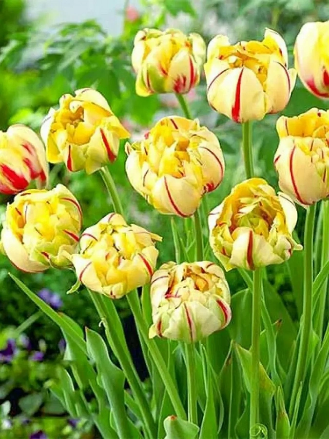 Тюльпан махровый glamour unique - это великолепное растение с лимонно-желтыми цветками, которое поразит ваш взгляд своей красотой. Стебель тюльпана прочный и устойчивый, достигает высоты до 40 см, что делает его идеальным для групповых и одиночных посадок. Листья тюльпана имеют изящную форму и создают уникальный акцент в саду.