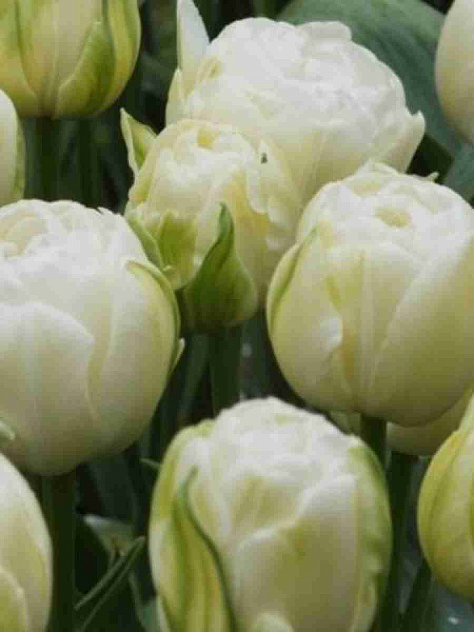 Тюльпан махровый Maureen Double - это великолепное растение, которое поразит вас своей изысканной красотой. Его бело-кремовые цветы смотрятся как настоящие произведения искусства, напоминая нежные облака на ясном небе. Высота этого тюльпана достигает до 60 см, что делает его идеальным для групповых и одиночных посадок в вашем саду или на клумбе.