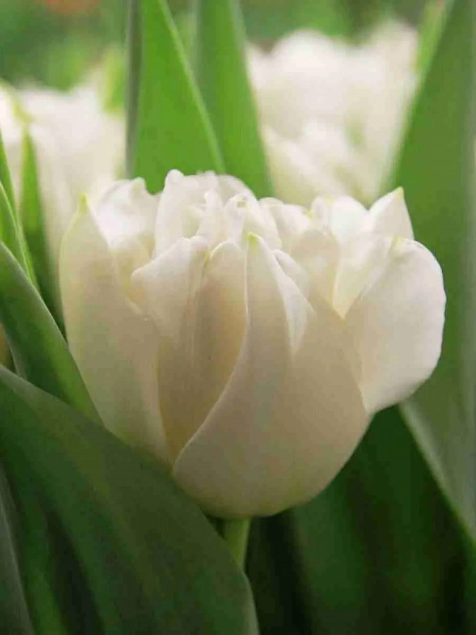 Тюльпан махровый North Cape - это великолепное растение, которое поразит вас своей красотой и изяществом. Его стебель достигает высоты до 40-45 см, а его белые цветы расцветают в мае, принося неповторимое очарование в ваш сад. Листья тюльпана North Cape имеют элегантную форму, что делает его еще более привлекательным.