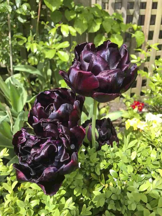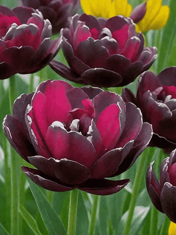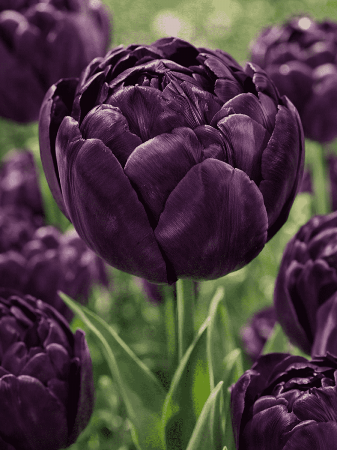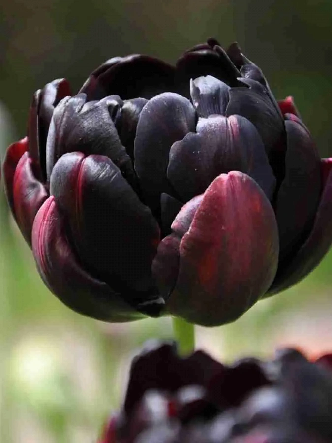 Тюльпан махровый поздний блэк хиро - это великолепное растение с темно-бордовыми, почти черными цветками, которые привлекают внимание своей необычной окраской. Этот сорт тюльпанов отличается высокой морозостойкостью и может быть выращен в большинстве регионов России. Стебли растения достигают высоты до 45 см, что делает его идеальным для групповых и одиночных посадок. Листья тюльпана зеленого цвета, создавая красивый контраст с темными цветками.
