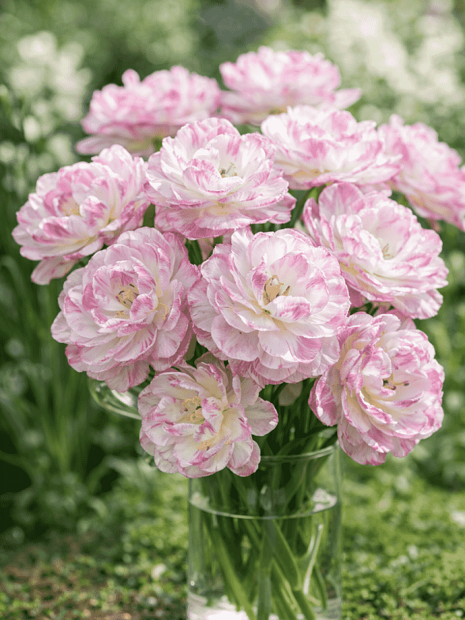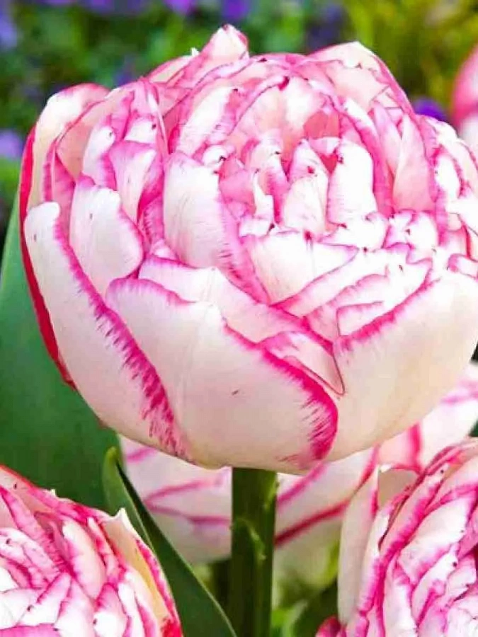 Тюльпан махровый поздний "Дабл Тач" - это великолепное растение с густомахровыми цветками, кремово-белыми с темно-розовой каймой по краям лепестков. Этот сорт тюльпанов порадует вас своими яркими красками в мае-апреле, добавляя неповторимую атмосферу в ваш сад. Высота растения достигает 30-40 см, что делает его идеальным для групповых или одиночных посадок. Листья зеленого цвета создают прекрасный контраст с цветами, придавая композиции особый шарм.