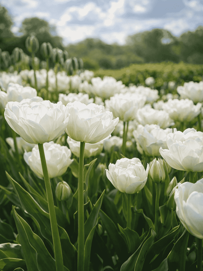 Тюльпан mondial - это изысканное растение с нежно-белыми цветками, которое поражает своей красотой и изяществом. Сорт этого тюльпана отличается высотой до 40-45 см и размером цветка 8-10 см, что делает его идеальным выбором для групповых и одиночных посадок. Этот цветок цветет в мае и предпочитает солнечные места, поэтому выберите хорошо освещенное место для его посадки.