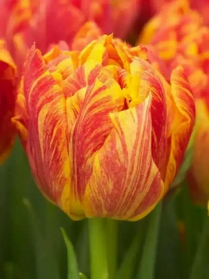 Тюльпан monte flame - это великолепное растение с яркими желто-красными цветками, которые расцветают в мае и радуют глаз своей красотой. Этот сорт тюльпанов отличается высотой стебля от 35 до 45 см, что делает его идеальным для групповых и одиночных посадок. Листья тюльпана monte flame имеют классическую форму и создают эффектный контраст с яркими цветами.