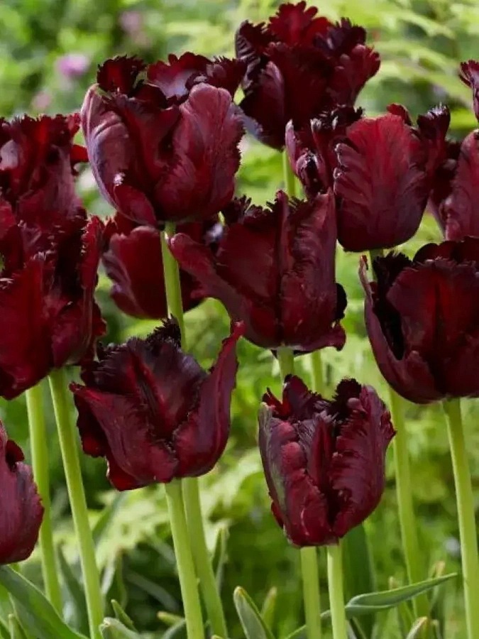 Луковицы тюльпана Блак Паррот (Black Parrot) великолепное приобретение для дачных и приусадебных участков. Эти растения отлично комбинируются с другими видами и сами по себе выглядят необычно и оригинально. Этот тюльпан не более полуметра в высоту имеет темно-бордовый бокал с сильно гофрированными листьями. Цветение его с конца апреля продолжается две-три недели. Для посадки требуется: