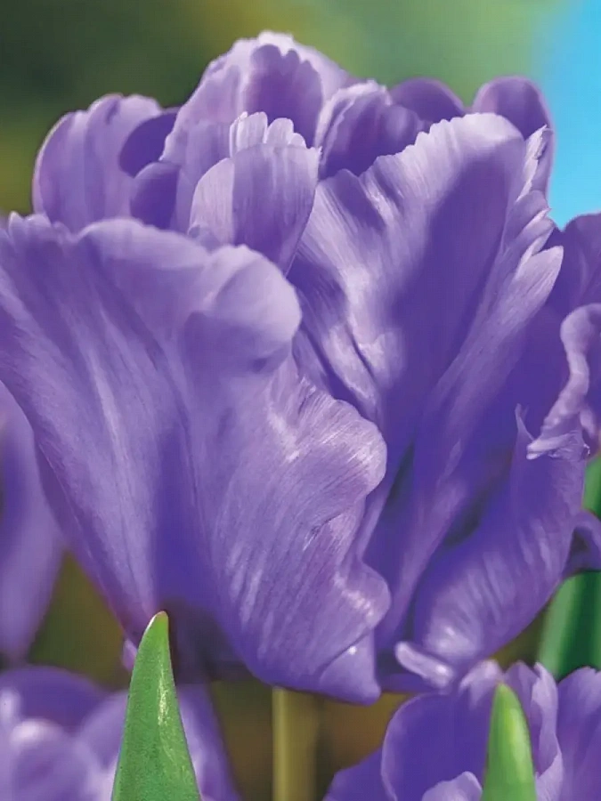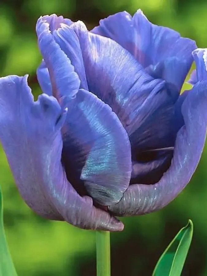 Луковицы тюльпана Блю Паррот (Blue Parrot) – дают необычайно красивого голубого цвета цветок. Это растение с оригинальным бокалом относится к попугайным тюльпанам. Лепестки его сильно волнистые, напоминают перья растрепанной птицы. Цветет в конце весны довольно продолжительно. Распространен практически повсеместно, где климат умеренный. В уходе цветы эти неприхотливы: