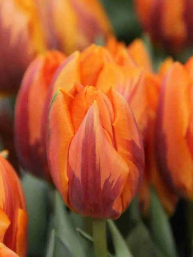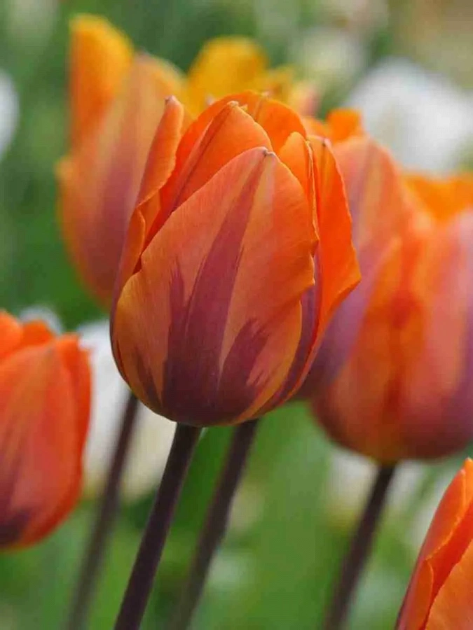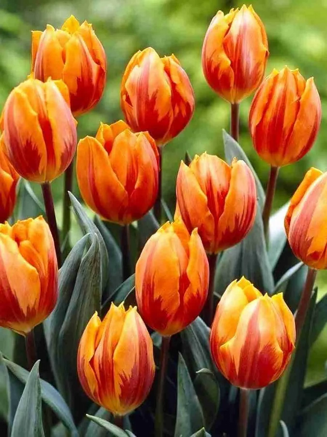 Тюльпан Princess Irene - это великолепное растение с оранжевыми цветками, которое поражает своей красотой и изяществом. Сорт этого тюльпана отличается высотой до 60 см и размером цветка впечатляющих 15 см. Его листья имеют ярко-зеленый оттенок, что создает прекрасный контраст с яркими цветами.