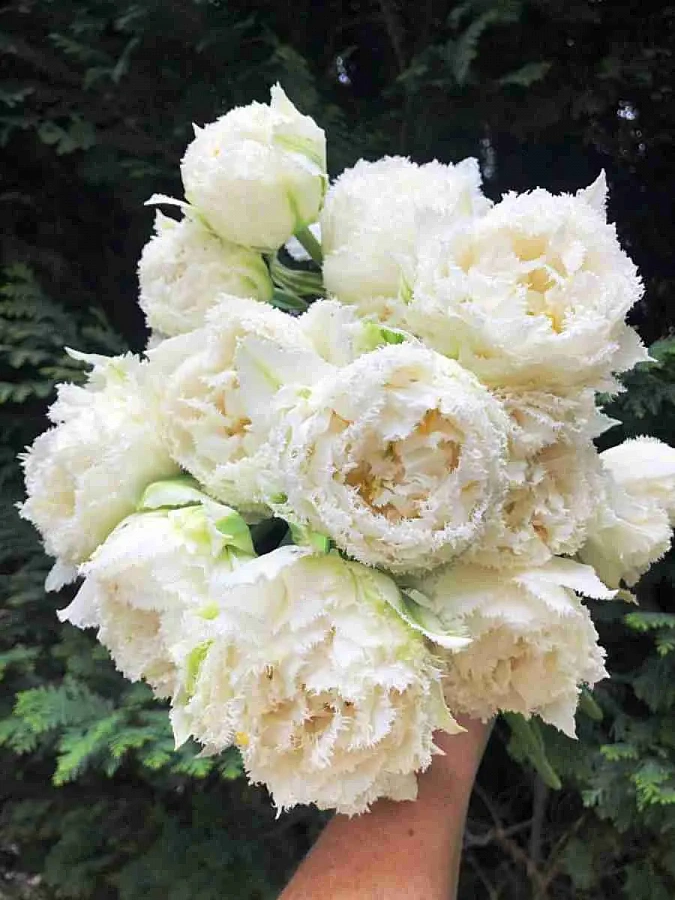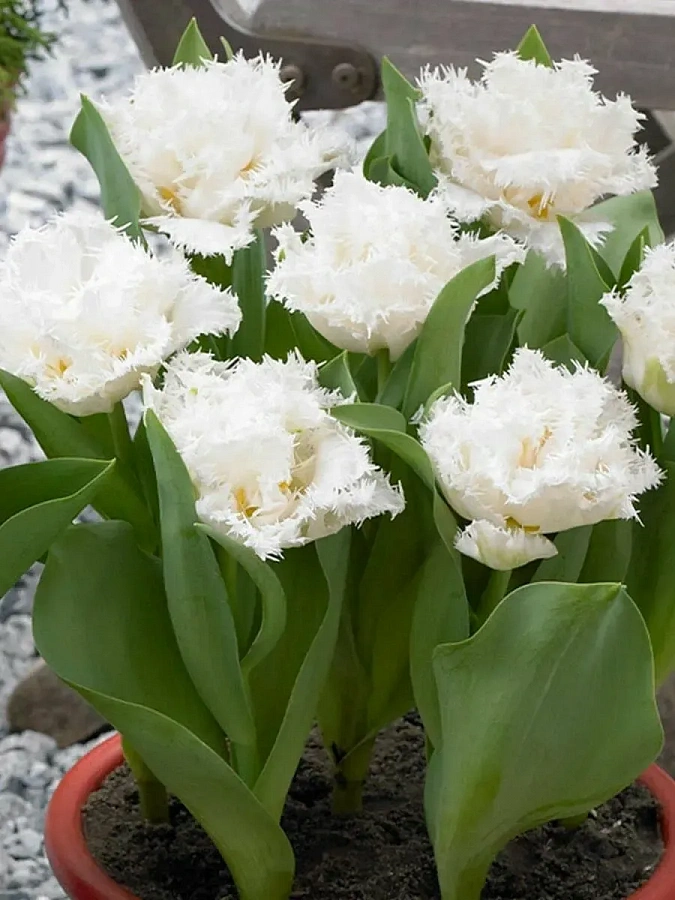 Луковицы тюльпана Snow crystal выращивают в регулярных посадках на клумбах или в контейнерах. Этот многолетник великолепно сочетается со всеми весенними цветами. Цветет он с апреля по май. На крепких цветоносах, высота которых до 40 см, распускаются белоснежные с бледно-зелеными чашелистиками бутоны. Лепестки по краям украшает длинная игольчатая бахрома. Смотрится цветок очень эффектно, издалека по внешнему виду он даже напоминает пион. Высаживать луковицы тюльпана Snow crystal стоит с конца сентября до начала ноября. Лучше всего для посадки подходят солнечные участки с рыхлой почвой.