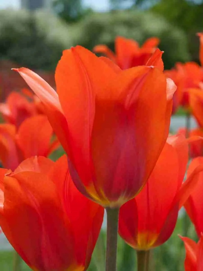 Тюльпан Temple's Favourite - это великолепное растение с насыщенно-оранжевыми цветками и темно-оранжевыми прожилками, которые привлекут внимание любого садовода. Этот сорт тюльпанов отличается высотой до 120 см и размером цветка 10 см, что делает его идеальным выбором для групповых или одиночных посадок.