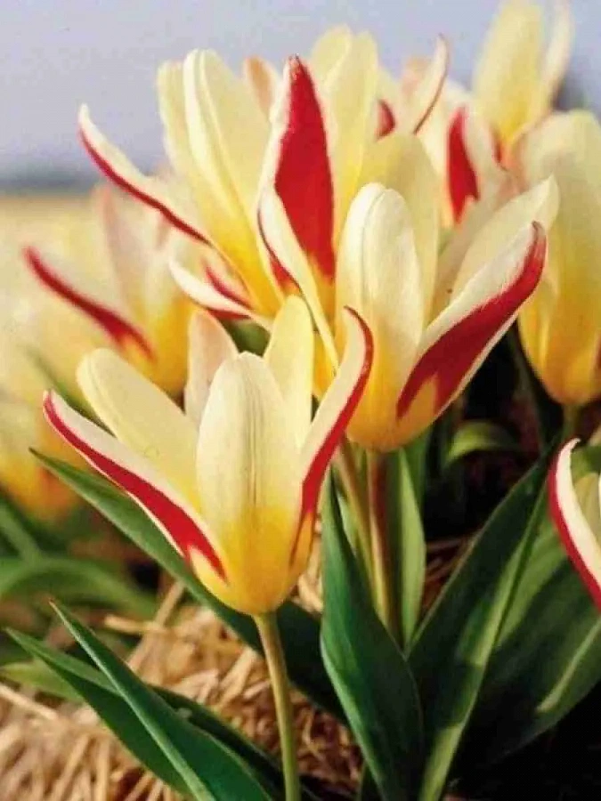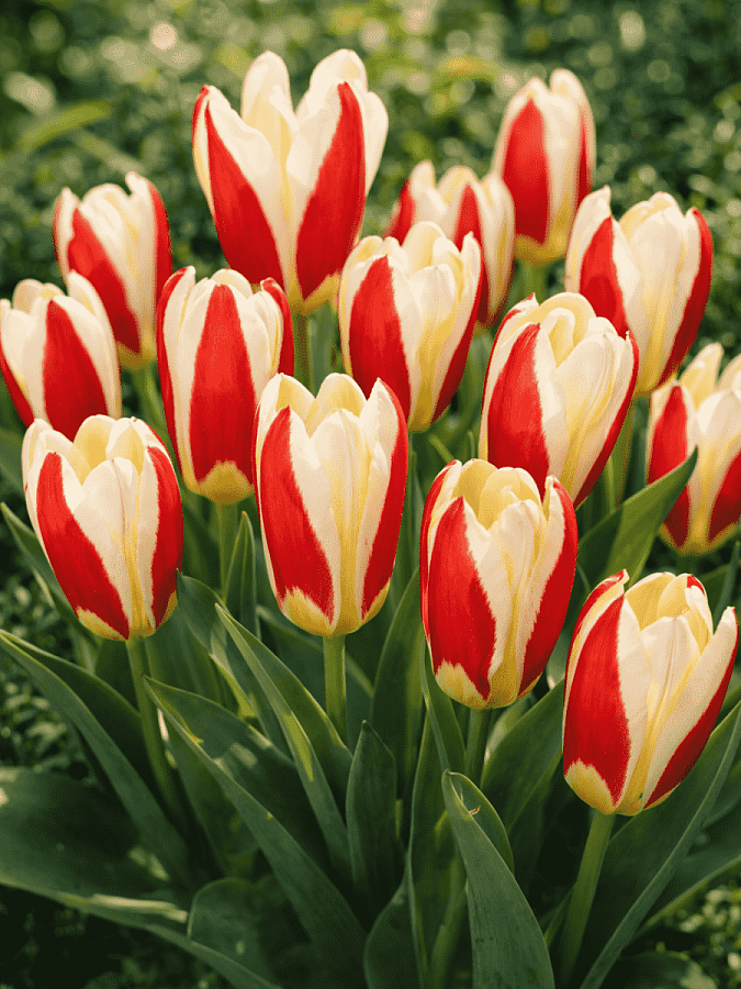 Тюльпан The First - это великолепное растение с яркими бело-красными цветками, которые будут радовать ваш взгляд в мае. Сорт отличается компактным размером до 25 см и крупными цветками диаметром 8-10 см. Листья тюльпана имеют ярко-зеленый оттенок, что создает прекрасный контраст с яркими цветами.
